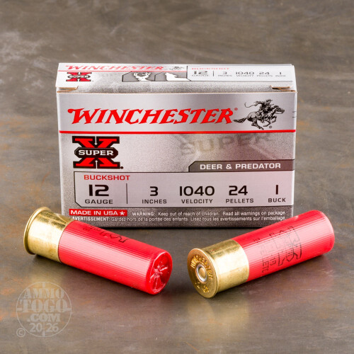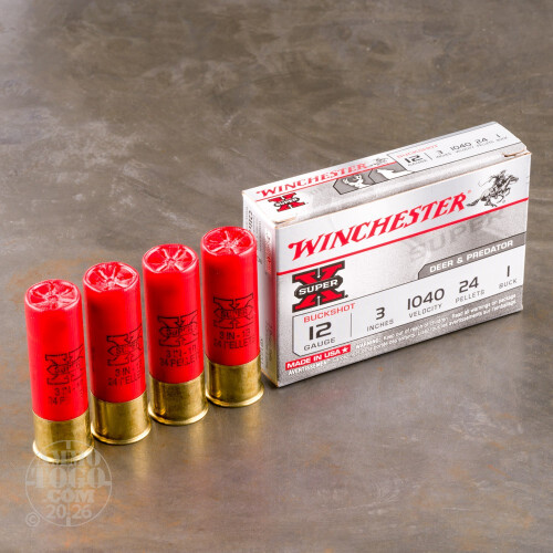 5rds - 12 Ga. Winchester 3" 24 Pellet #1 Buckshot Ammo Details