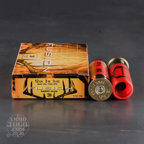 This is a 12 Gauge Federal Fusion 3" 7/8oz. Sabot Slug Ammo. Fusion slugs have made shotgunners part of the next generation of deer hunters. Slug hunters, can now find the same unequaled energy and deer devastation in their favorite rifled-barrel shotgun. The slug itself is designed for optimum performance against light, thin skinned game such as whitetail. It comes packed in 5rd. boxes. Muzzle Velocity: 1700 fps.