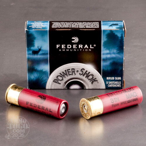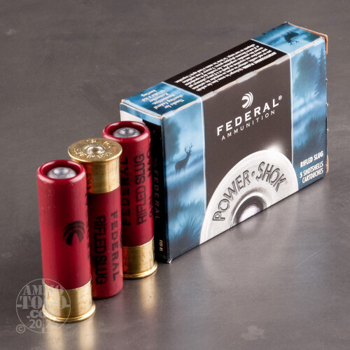 This package contains 5 rounds of Federal Power-Shok 12 gauge ammunition. Each new production 3-inch shotshell is loaded with a 1 ¼ ounce rifled hollow point lead slug. Perfect for hunting large game, especially in rifle-restricted areas, Power-Shok slugs offer increased accuracy and hard-hitting performance in the field. These loads feature Federal’s patented TruBall slug technology which centers the slug in the barrel for improved shot alignment and improved accuracy.