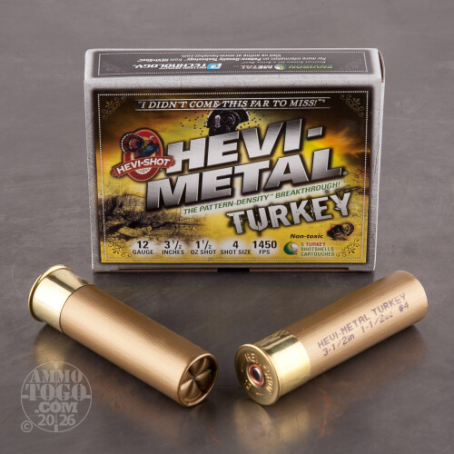 5rds - 12 Gauge Hevi-Metal Turkey 3 1/2" 1 1/2oz. #4 Shot Ammo