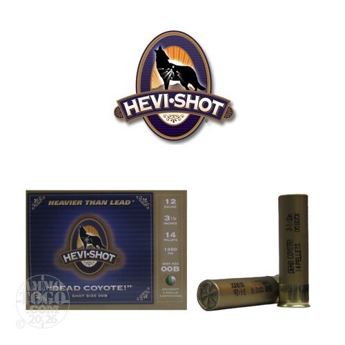 This is 12 Gauge Hevi-Shot Dead Coyote 3 1/2" 1 3/8oz. 14 Pellet 00 Buckshot Predator Ammo. Hevi-Shot Dead Coyote produces lethal knockdown power at over 70 yards. Hevi-Shot Dead Coyote is nearly twice as effective as standard conventional loads. This predator load has a muzzle velocity of 1350fps. Comes packed 5rds. per box.