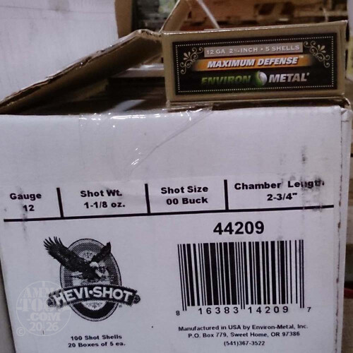 This is 12 Gauge Hevi-Shot Maximum Defense 2 3/4" 1 1/8oz. 00 Buckshot Ammo. Hevi-Shot Maximum Defense pellets are heavier than lead. This ammunition maintains down range energy, resists cross wind effects and delivers devastating lethality. This ammo comes packed in 5rds. per box.