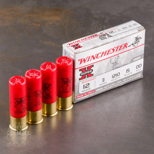 5rds - 12ga Winchester Super-X 3" 15 Pell. 00 Magnum Buckshot Ammo Details