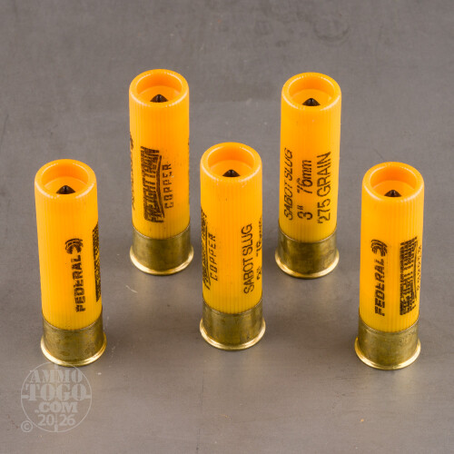 5rds – 20 Gauge Federal Freight Train Copper 3" 275gr Sabot Slug Ammo Details
