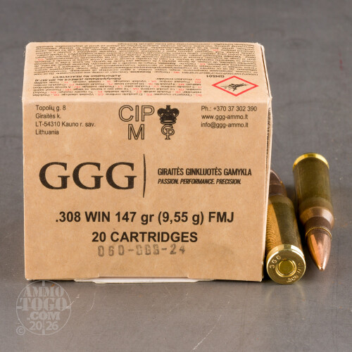 600rds – 308 Win GGG 147gr. FMJ Ammo