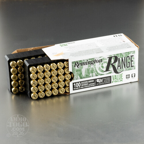 You. The range. Your favorite 9mm handgun. A whole case of Remington Range 9mm ammunition. Those things belong together. If you’ve got a whole stack of fresh paper targets – or a big bag of recyclables – this American-made ammo is all you need to get right to it!This is a lightweight 115 grain round, loaded to a just barely supersonic muzzle velocity of 1,145 fps. You’ll likely notice that its recoil is relatively gentler, which will allow you to fire away all day before your hand even thinks about getting tired. Remington’s handgun bullets are exclusively nonmagnetic. So long as you don’t expect a full metal jacket projectile to deliver terminal expansion inside its target, you should be well satisfied by these smooth-feeding and clean-shooting bullets’ performance.