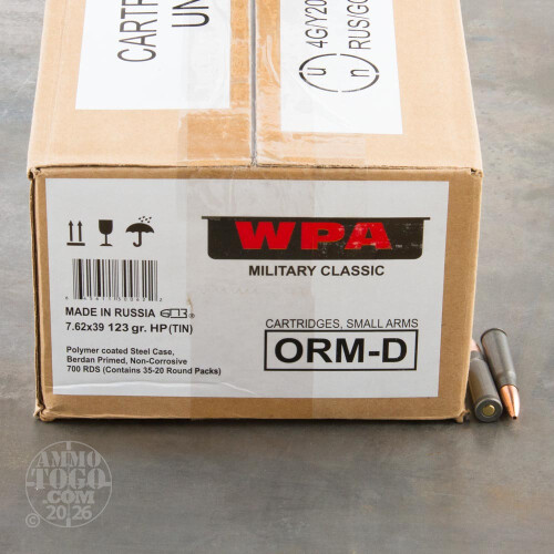 700rds – 7.62x39 Wolf Military Classic 123gr. HP Ammo in Sealed Spam Can Details