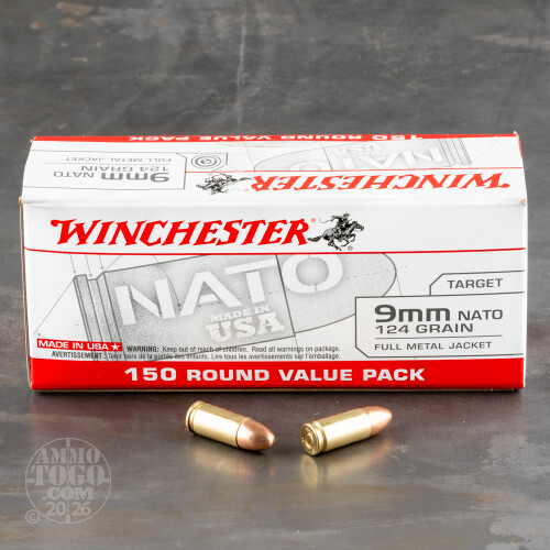 750rds – 9mm NATO Winchester USA 124gr. FMJ Ammo Details