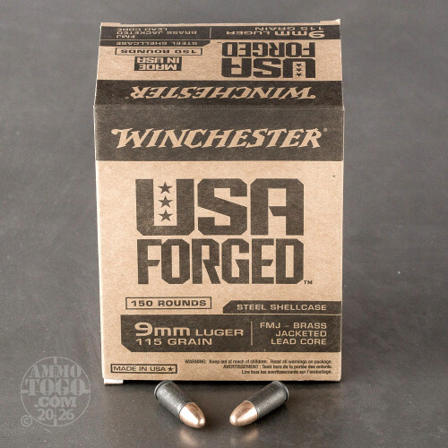 For shooters who don't reload, Winchester USA Forged steel-cased ammunition is the best of both worlds--it's made in the USA to high standards but costs less than comparable brass-cased loads. The casings have friction-reducing coatings to ensure reliable cycling. These 9mm Luger cartridges come in a large 750-round case suitable for high volume shooting; each round fires a light 115 grain brass jacketed bullet. This ammo uses non-corrosive Boxer primers.-