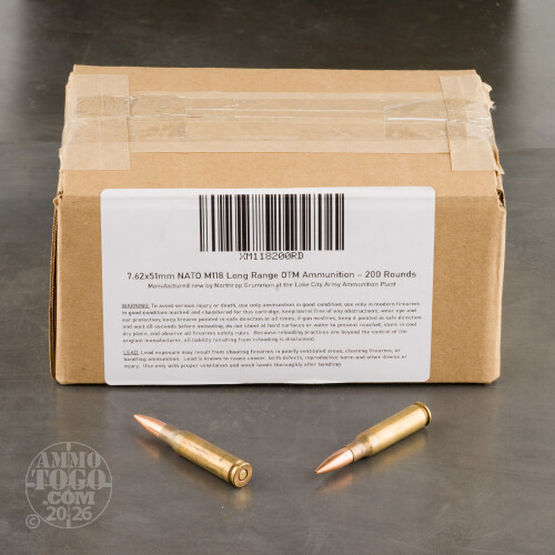 Manufactured at Lake City Army Ammunition Plant (LCAAP), this XM118 7.62x51mm NATO (.308 Winchester) is designed for accurate, long-range shooting. Loose-packed in 200 round cases, these rounds are considered military seconds. Military specifications are extremely stringent. When a few rounds fail out of a large batch, the entire lot is sold to civilian consumers as "seconds". This means the majority of these rounds are in perfect condition.