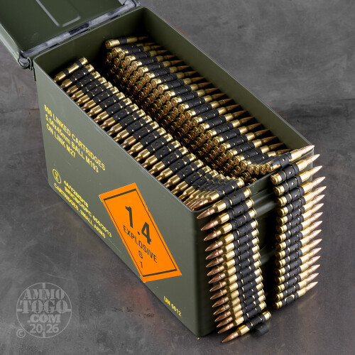 These 800 rounds of 5.56x45 are joined by M27 links. First developed for use in the Stoner 63 during the Vietnam War, such linked ammo later was later adapted for the M249 SAW and is now compatible with a variety of rifles. These links can be reassembled and reused, but you might want to play a movie in the background if you’re doing that kind of project.Magtech’s 5.56x45 gives you authentic military performance. It’s an M193 like the standard issue for field use in the M16A1, made of a simple lead core with a gilded metal jacket. This caliber is available with more lethal bullets, but it would be kind of foolish to argue that this cartridge wouldn’t serve you in a fight -- especially if you’ve got 800 of them on a chain.