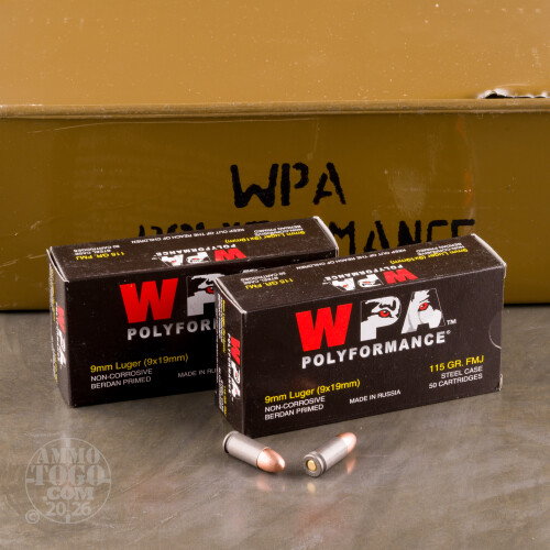 800rds – 9mm Wolf WPA Polyformance Spam Can 115gr. FMJ Ammo Details