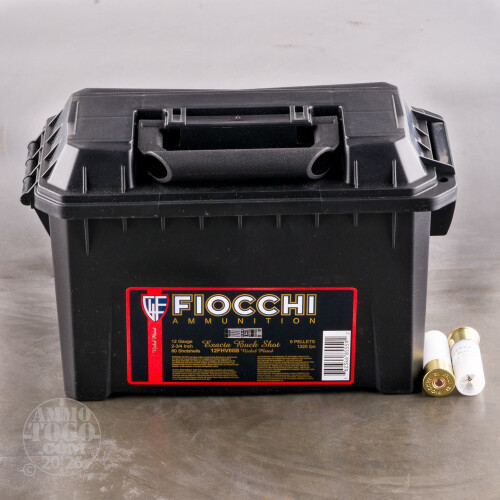 This package contains 80 rounds of Fiocchi Exacta 12 gauge ammunition packed in a black polymer ammo can. Each 2 ¾-inch shotgun shell is loaded with 9 pellets of 00 buckshot. Manufactured to strict tolerances, these loads feature moisture-resistant plastic hulls and hard, functional one-piece plastic wads.