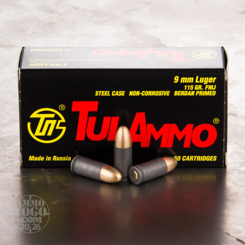 Please be aware, your order may or may not contain a can opener.This is Tula 9mm 115gr. Full Metal Jacket Ammo. This ammo is manufactured in Russia. It has a polymer coated steel case. It is NON-corrosive and Berdan primed. It comes packed in a 900rd. spam can.