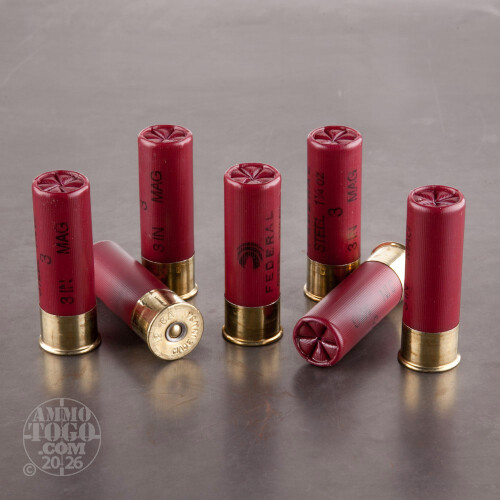 This 12 Gauge shotshell by Federal is loaded with 1 1/4 ounces of #4 steel shot. That makes it perfect for duck hunting, especially given that this shell’s shot is made of nontoxic steel which won’t pollute beautiful wetlands or invoke the ire of otherwise friendly game wardens. Steel’s lesser density means it doesn’t have the momentum that lead has, which this shell compensates for with its fast 1,400 fps muzzle velocity. It packs the wallop a distant mallard needs to be persuaded to come on back down to earth!A Speed-Shok shell’s shot is exceedingly round, enabling it to maintain a tight pattern as it travels upward. This shell additionally features an efficient wad with a gas sealing flange to further improve its pattern, as well as a high output primer which won’t fail to work when exposed to the wet and cold environments that ducks like to hang out in. And for a price like this, you can have more ducks in your fridge than the Peking River during rice harvest season!