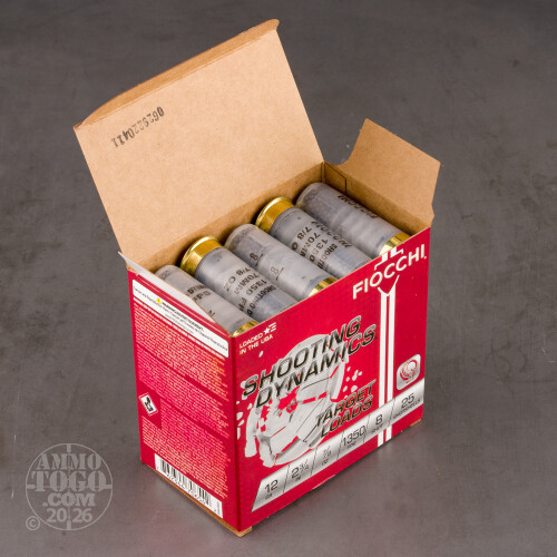 This is 12ga Fiocchi 2 3/4" 7/8oz. #8 Shot Target Ammo. Fiocchi has been manufacturing ammunition in Ozark, Missouri since 1986 and in Europe since 1876. Fiocchi ammunition is manufactured with pride from the finest raw materials and components hard uniform, functional one-piece plastic wads, clean consistent powders and consistent non-corrosive primers. Premium materials and strict, exacting standards of quality and consistency make Fiocchi a worldwide leader in innovation and design. This ammo comes packed in 25rd. boxes and 250rds. per case.