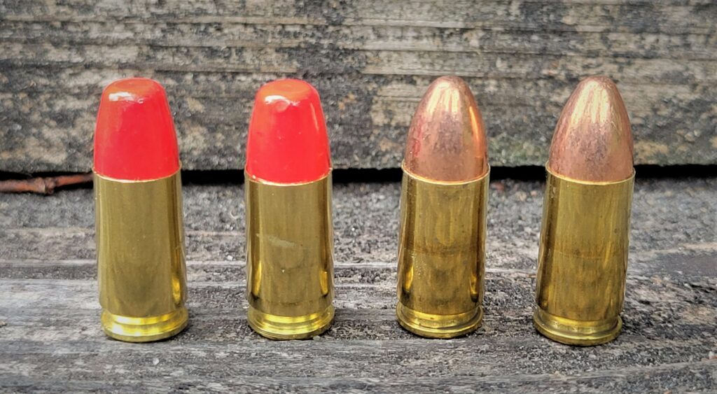 While I wasn’t shooting steel, there are some visible differences in how polymer bullets punch holes in paper targets. “Punch” is the operative word here. The polymer bullets literally punch perfectly round holes, while standard FMJs rip jagged openings in the paper.