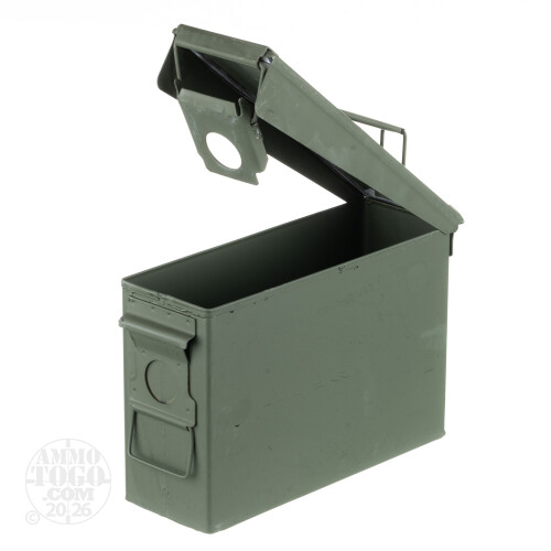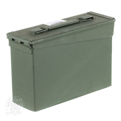 These new production 30 Cal ammo cans are a great option to keep your ammunition dry and corrosion free. These M19 OD green Mil-Spec cans will easily hold 500 rounds of .223/5.56 NATO in boxes, or 1,100 loose rounds of 9mm, or 2,500 loose rounds of .22LR. Perfect for long-term storage in your safe at home.