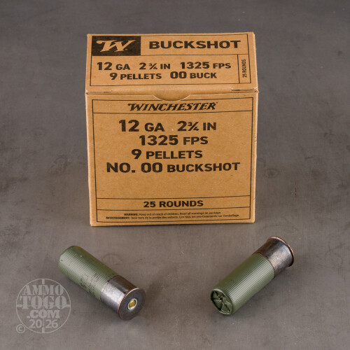 25rds - 12 Gauge Winchester Military 2 3/4" 9 Pellet 00 Buckshot Value Pack Ammo Details