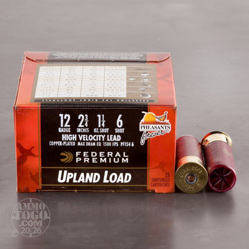 25rds – 12 Gauge Federal Wing-Shok Pheasants Forever High Velocity 2-3/4" 1-1/4oz. #6 Shot Ammo Details