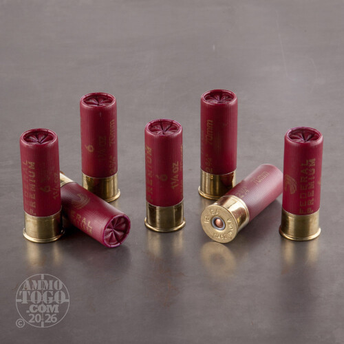 This 12 Gauge shotshell by Federal is loaded with 1 ¼ ounces of #6 shot. You’ll find the .11” diameter pellets ideal for taking grouse, partridge, and pheasant, as their kill zone becomes about a foot wide when they’ve reached approximately 30 yards, which is more than adequate to take care of the task at hand. This shot is also copper plated, which strengthens it substantially so that it can avoid deformation while traveling through the bore in order to pattern tightly and also reliably penetrate coarse plumage upon impact.These 25 shells have brass plated heads which are resistant to corrosion, as well as a fast muzzle velocity of 1,500 fps which will lessen the need for leading your target while taking aim. Very nicely, a portion of these shells’ purchase price will go toward Pheasants Forever, a nonprofit organization which seeks to protect upland game populations.