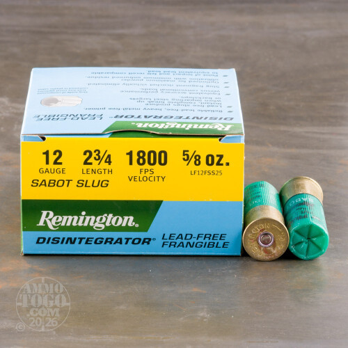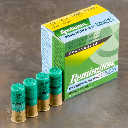 25rds – 12 Gauge Remington Disintegrator 2-3/4" 5/8oz. Lead Free Frangible Sabot Slug Ammo Details