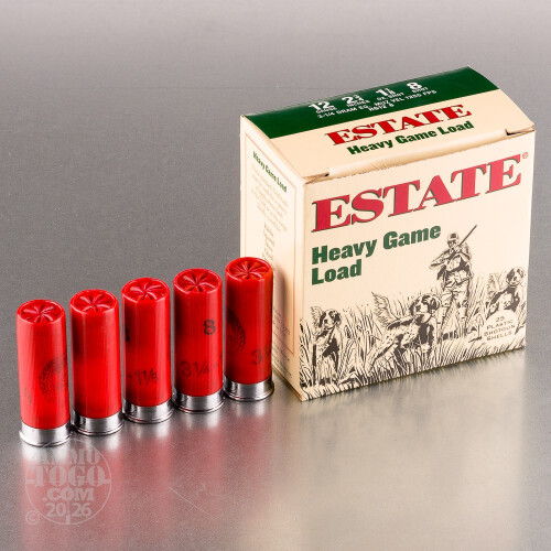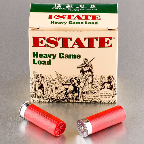 This is 12 Gauge Estate Game and Target 2 3/4" 3 1/4 Dram 11/8oz. #8 Shot Ammo. Estate Cartridge shotshells may be used for a variety of applications both in the field or at the range. Muzzle velocity of 1255fps. This ammo is made in the USA and comes packed 25rds. per box.