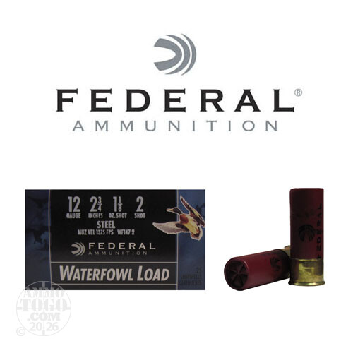 250rds - 12 Ga. Federal Speed-Shok 2 3/4" 1 1/8oz #2 Steel Shot Ammo