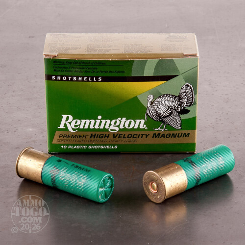 This is 12 Gauge Remington Premier High Velocity Magnum 3" 1 3/4oz. #5 Copper-Plated Buffered Turkey Load. This magnum-grade Copper-Lokt shot is cushioned with special polymer buffering and is futher protected by Remington's Power Piston one-piece wad for a dense and even pattern. Delivers superb performance and devastating knockdown power. This is a full power load that travels at 1300fps. and comes packed in 10rds. per box.