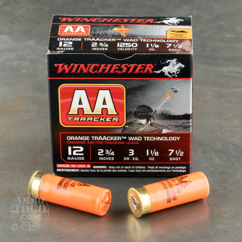 250rds - 12 Gauge Winchester AA Orange TrAAcker 2 3/4" 3 Dram 1 1/8oz. #7 1/2 Shot Ammo Details